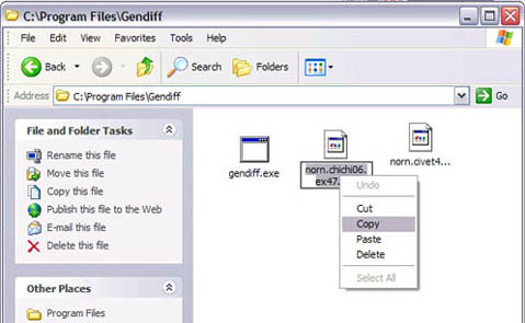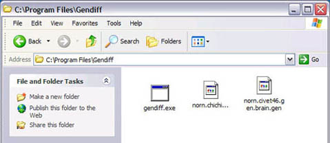 - Create a directory called "Gendiff" in your "Program Files" directory on your C: drive and copy the gendiff application to the folder. Also put a copy of the gen files you wish to compare in the directory.