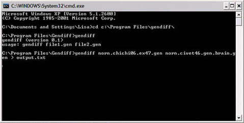- Hit "return" to see the results displayed on screen, Alternatively, type "> output.txt" after the second gen filename, and hit return to write the results to a text file.
