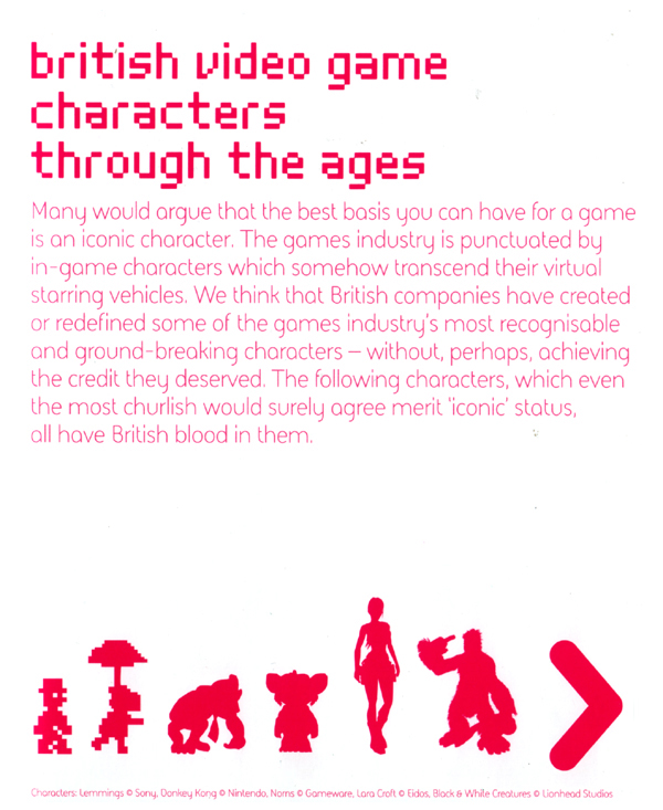 The Guide to the Pavilion opened with an overview of the British Games Industry and of iconic British games characters throughout the ages. How wonderful it was to see a little silhouette of our Norn front and centre! Click on the pages at left to read what they've said. Of course, it's also a testament to the loyalty and persistence of the Creatures Community for keeping the spirit alive even when it seemed Creatures was finished for good.