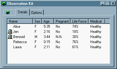 This Applet allows you to see the condition of all your norns at a glance.